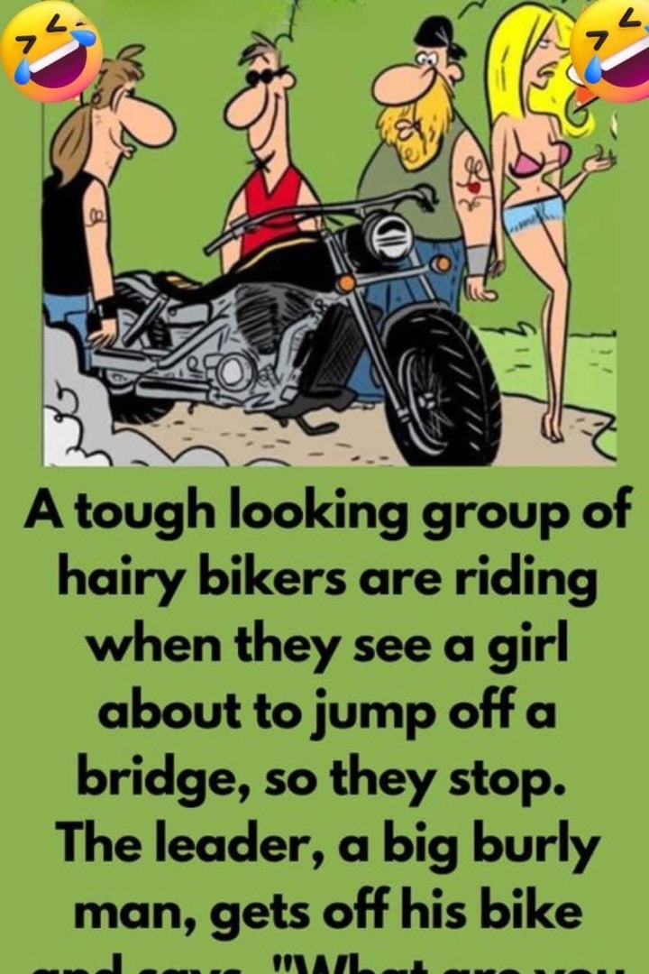 A gang of rugged, bearded bikers was roaring down the highway when they spotted someone standing on the edge of a bridge, clearly in distress. […]