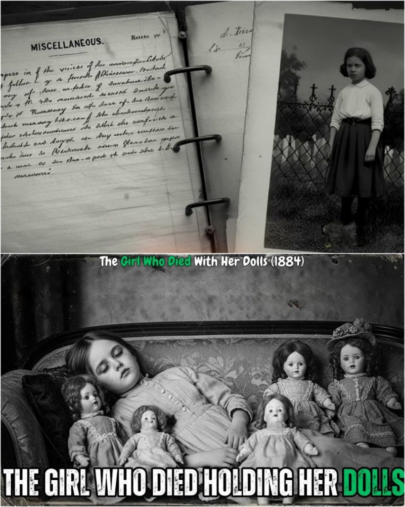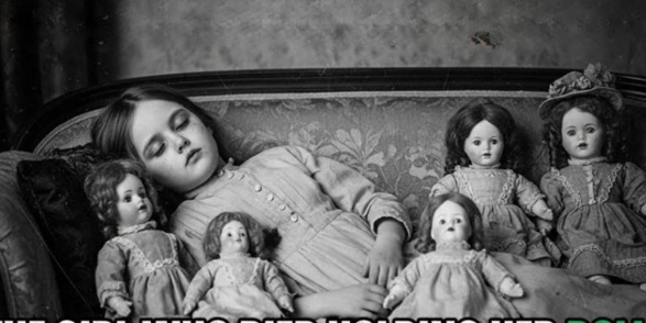 In the bleak winter of 1884, in a quiet industrial town in New England, photographer Joseph Mand carried his tripod into a modest red-brick home. Inside, he arranged a scene both tender and disturbing. A little girl named Rose Kavanagh, only nine years old, lay motionless on a velvet sofa, dressed in white lace. Around her were five porcelain dolls—each with glassy eyes and delicate smiles.