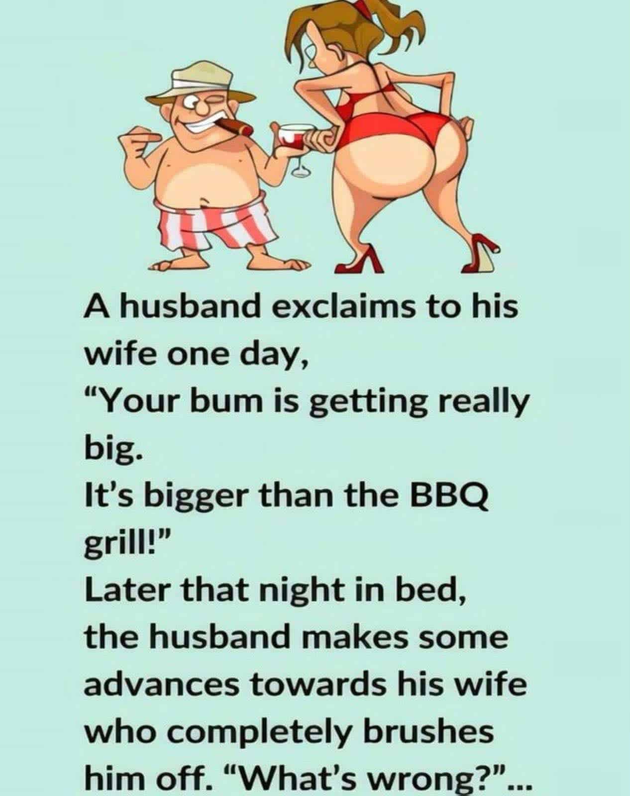 1. A husband exclaims to his wife one day… A husband exclaims to his wife one day, “Your bum is getting really big. It’s bigger […]