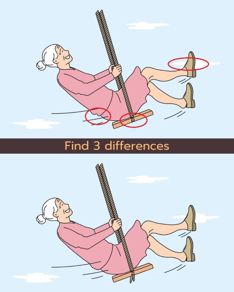 In a fast-paced digital world where attention spans are shrinking and multitasking is the norm, truly looking—not just glancing—has become a lost art. That’s what makes visual puzzles like “Spot the Difference” so valuable. They seem simple, even childlike, but underneath their colorful exteriors lie tests of focus, precision, and patience. Today’s puzzle, featuring a joyful grandma on a swing, invites you to slow down and sharpen your vision. Hidden within the charm of the illustration are three subtle changes that challenge your perception and attention to detail.