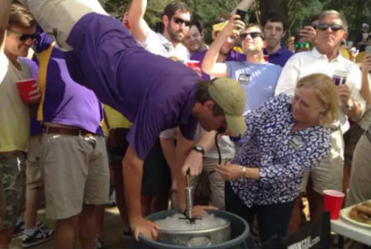 1️⃣ The Setup: The keg was placed in the center of the crowd — the spotlight of the party.
