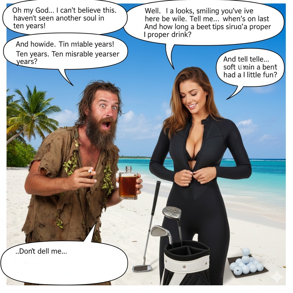 Man: “Oh my goodness… I can’t believe this! I haven’t seen another human being in ten years!”