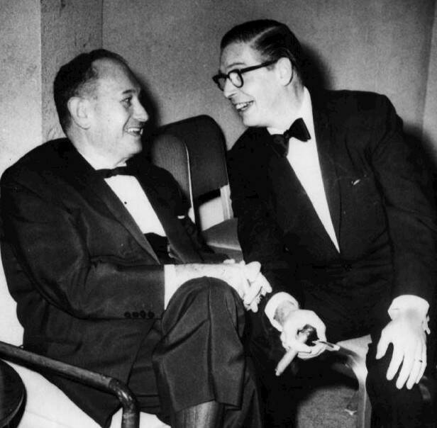 Harry Einstein, also known as Harry Parke, was photographed speaking to comedian Milton Berle at a Friars Club dinner in Los Angeles in 1958. Moments later, Einstein collapsed on Berle’s shoulder, dying from a massive heart attack. This photo captures the moment just before his unexpected death, marking the end of a comedic era.