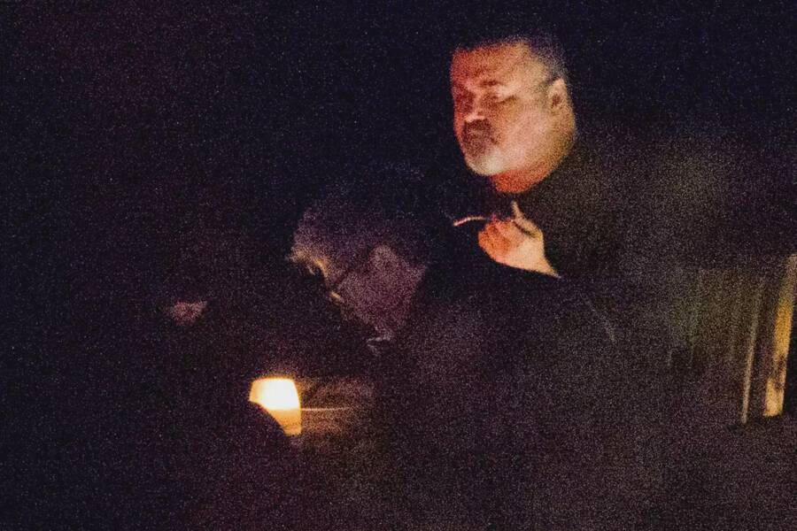 Captured during a remote public appearance for his foundation Meditate America, David Lynch made his final public appearance via video. The image taken at the ceremony in 2025 shows the famed director suffering from emphysema. In his last words, Lynch ended the ceremony with a peaceful “Peace.” Lynch passed away on January 16, 2025, at the age of 78.