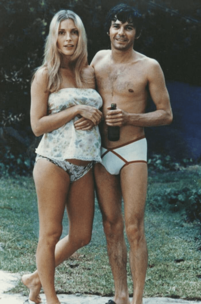 Captured with her friend Jay Sebring, Sharon Tate appears in this photo shortly before her brutal murder by the Manson Family cult on August 9, 1969. Tate, who was heavily pregnant at the time, was a rising star, and her death shocked the world.