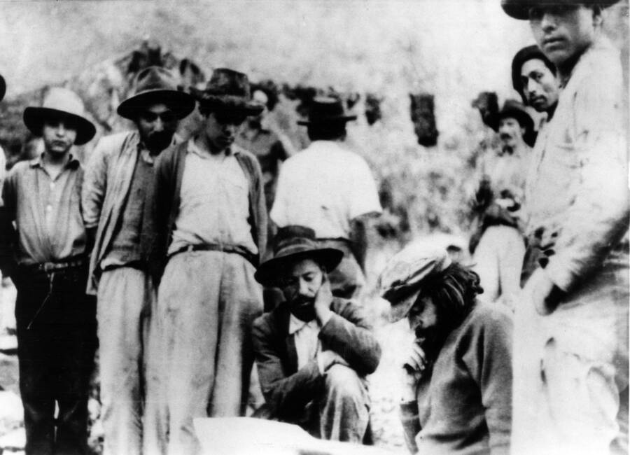In this photo, Ernesto “Che” Guevara, the Marxist revolutionary, is seen studying a map of the Pesca River region in Bolivia. This photo was taken just weeks before Guevara was executed by the Bolivian Army in 1967. His image has since become iconic, symbolizing the fight for revolutionary ideals.
