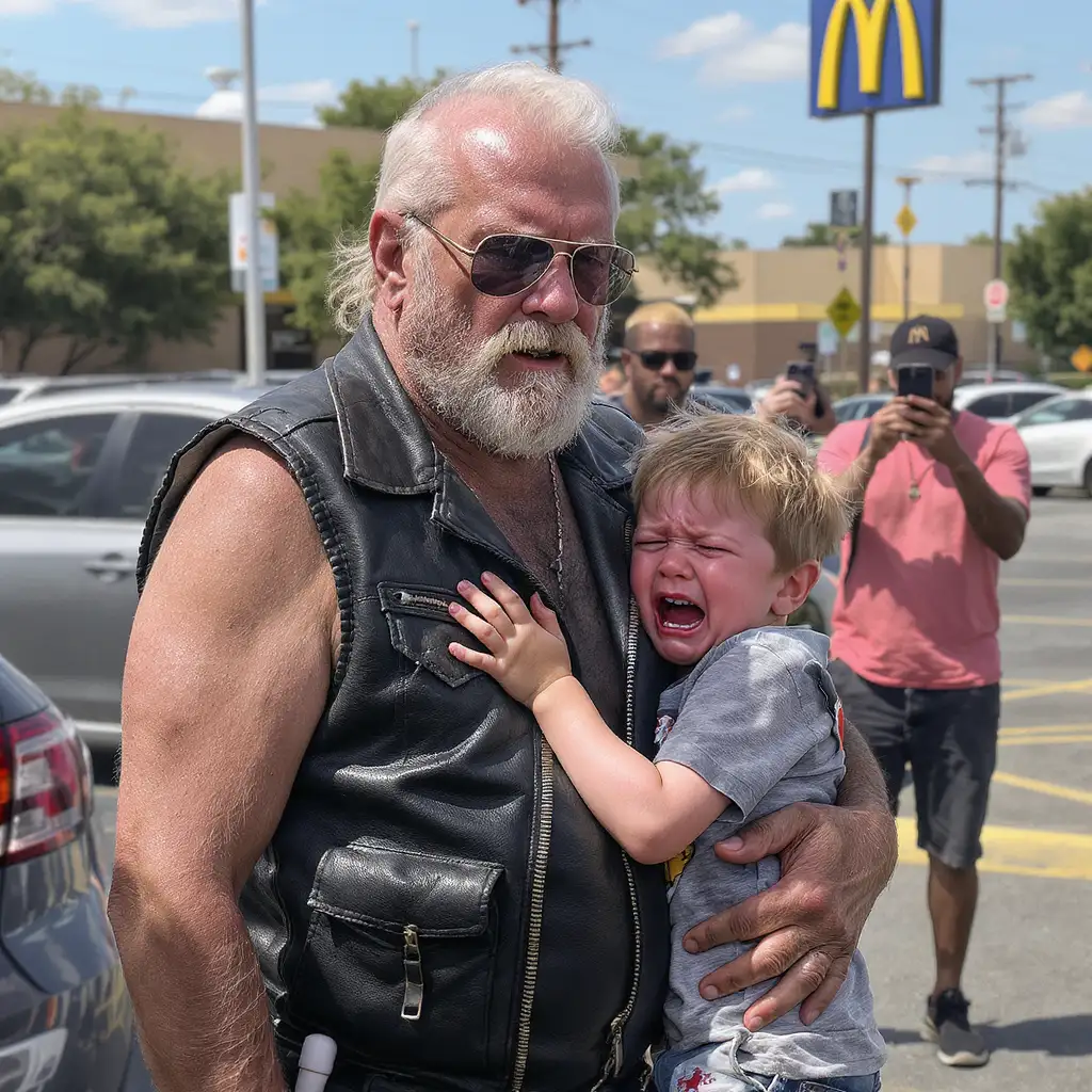 I was a 68-year-old biker grabbing a coffee when a little boy rushed up and clutched my leather vest like it was a life raft. He screamed—a raw, aching sound that lasted nearly forty minutes—while his mom, shaken and apologizing through tears, tried to loosen his grip. Strangers filmed. People whispered. But the boy wouldn’t let go. Then, as suddenly as a light switching on, he looked me in the eyes and spoke his first words in months: “Daddy rides with you.”