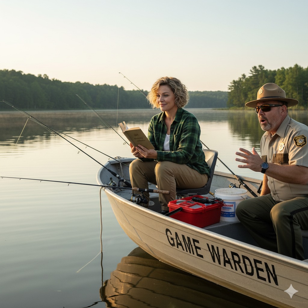 Soon enough, a game warden spots her and steers his boat alongside hers.