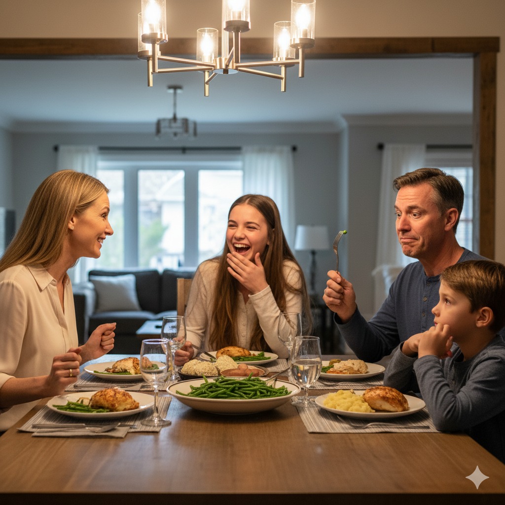 The room went quiet. The wife’s fork hovered midair. The daughter shot her dad a glare that could start a war.