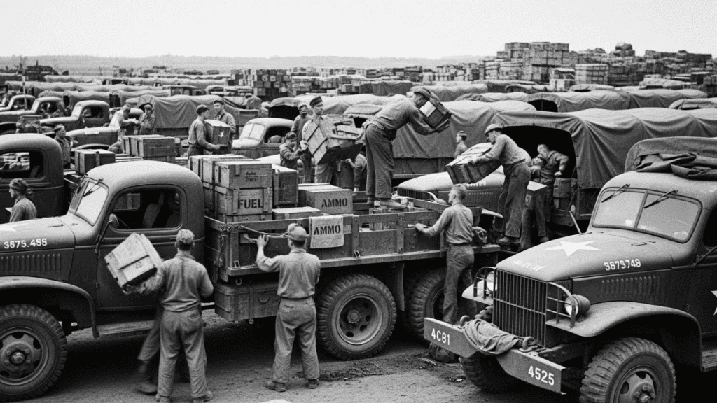 The scale of the Red Ball Express was staggering. Nearly 6,000 trucks ran continuously over 400 miles of rough and sometimes sabotaged terrain. In just 82 days, the operation delivered over 412,000 tons of supplies, achieving more than 122 million ton-miles. Even with a daily vehicle failure rate of 30%, the system never faltered, thanks to the mechanics and drivers who kept the convoys moving.