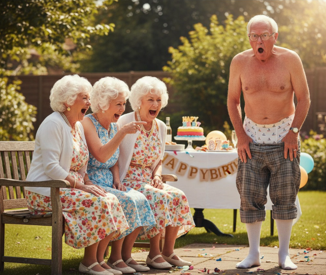 Three elderly ladies sat on a bench outside their nursing home, gossiping and people-watching, when an old gentleman shuffled past.