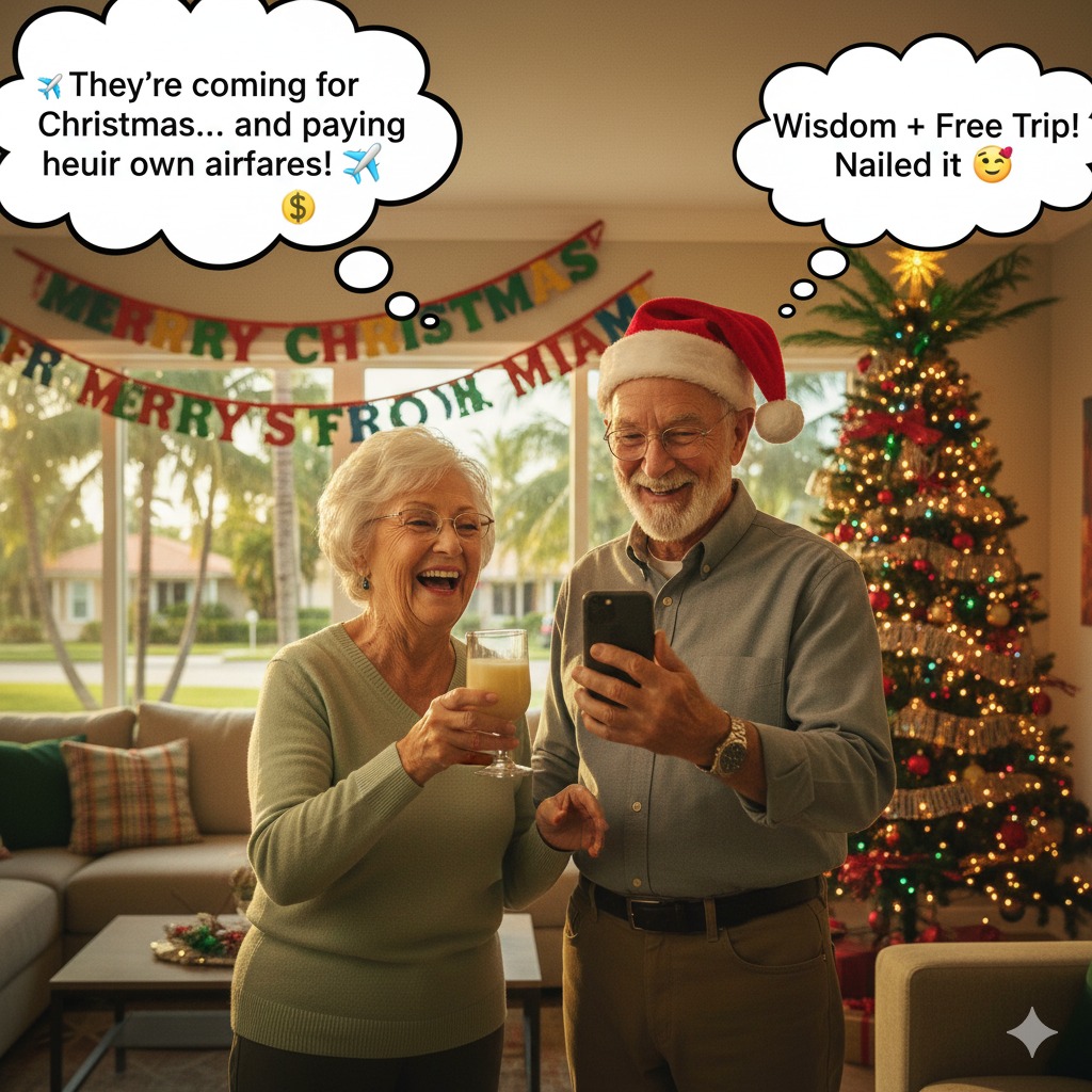 “Well, honey, they’re coming for Christmas… and they’re paying for their own plane tickets.” 😄✈️🎄