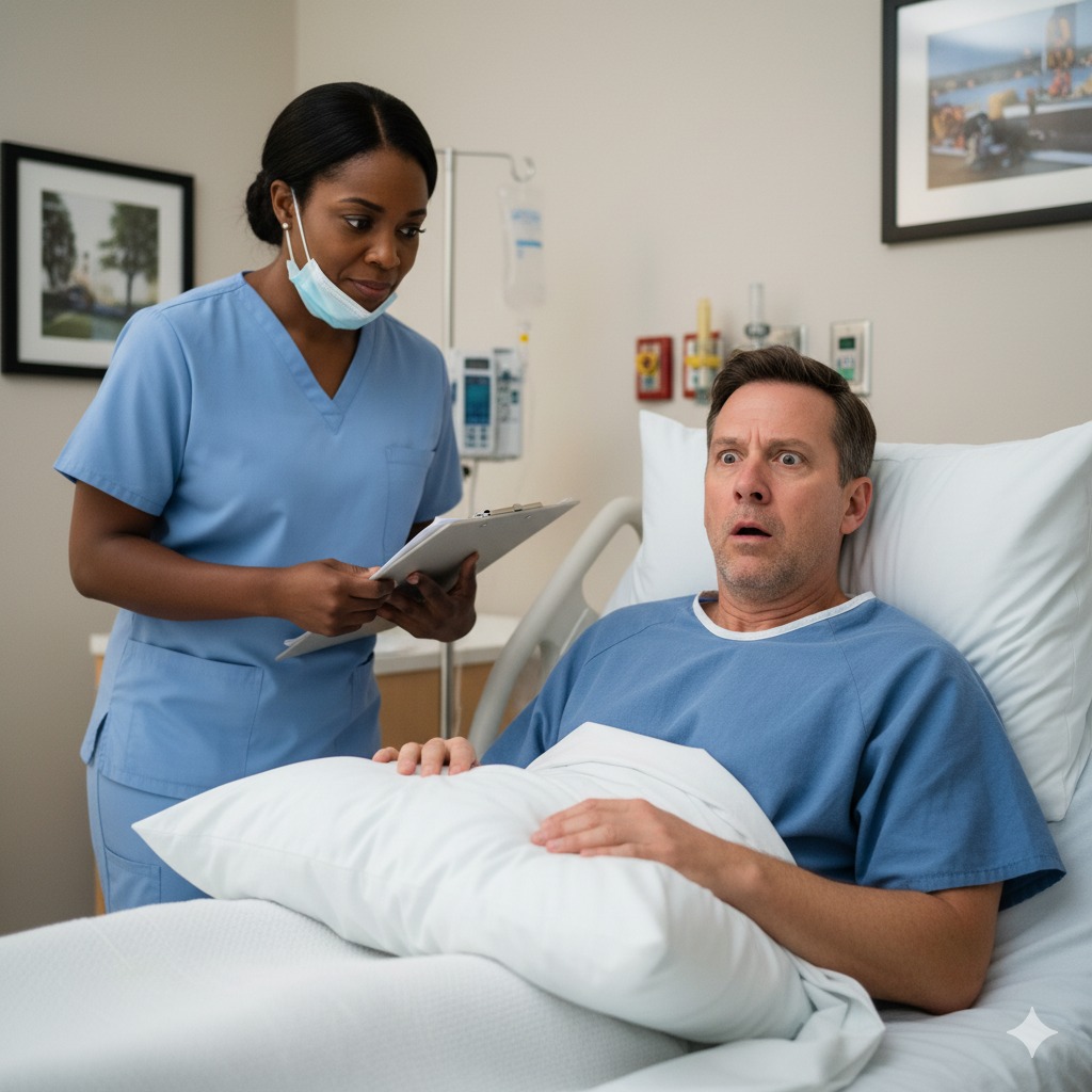 When he came to, he was lying in a hospital bed, pale and confused. A nurse stood beside him, shaking her head.