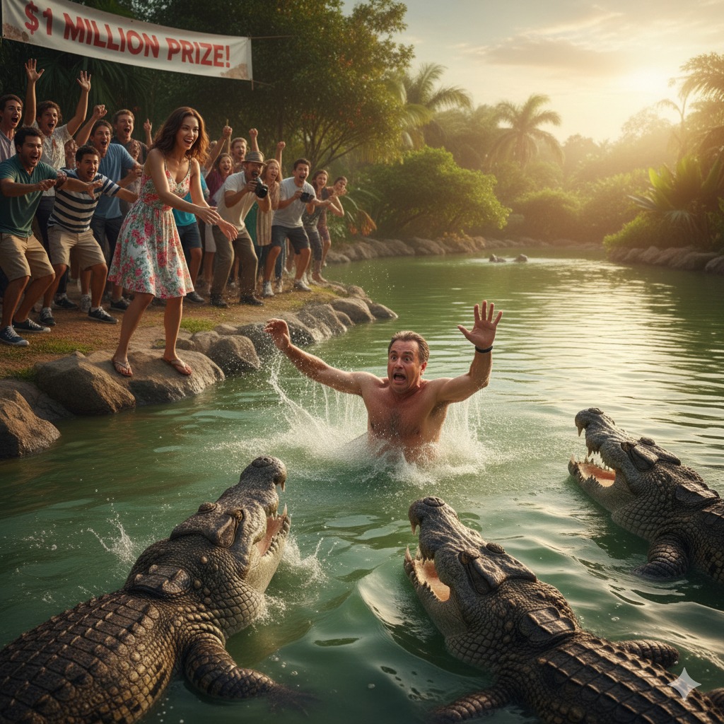 The owner suddenly called out, “If anyone is bold enough to jump in, swim across, and make it to the other side in one piece, I’ll hand over a million dollars!”
