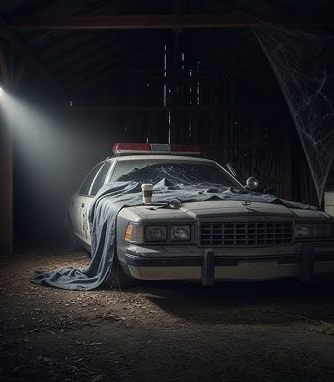 The morning light cut through the gaps in the weathered boards as Jake Morrison hauled open the old barn doors on the Hartwell farm. He’d owned the place for three months but hadn’t explored the back storage barn—just another relic on County Road 47. Then he saw it: the squared-off silhouette of a vehicle under a moth-eaten canvas. He pulled the cover back and froze. A rusting Milbrook County Sheriff patrol car—light bar, badges, the works—sat entombed in dust. The driver’s door was ajar; a diner mug, a clipboard, and a half-eaten sandwich lay inside like time capsules. Jake dialed 911 with shaking hands.